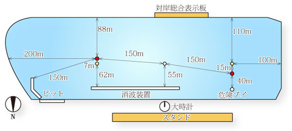 | 風速は、追い風にしろ向かい風にしろ5mくらいが目安。5m以下ならあまり気にしなくてもいいと思います。風向きも風速も、1日中一定ではありません。又、気温差にも注意して下さい。モーターの相場もガラリと変わる場合があります。よって水面状況の情報は常にチエックが必要です。 |