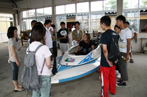 平成22年8月13日(金)、ボートレース津にてボートレーサーを目指している方を対象とした 観戦ツアーが行われました。 初めに財団法人日本モーターボート競走会山岡信彦執行役員から参加者へ挨拶がありました。 山岡執行役員は「この観戦ツアーを通して、ボートレースについて吸収できるところはどんどん 吸収してください。」と述べられました。 ゲストに三重支部の土性雅也選手と鈴木祐美子選手に来ていただき、ボートの乗艇姿勢など の実演をしていただきました。 参加者はゲストの三重支部選手に普段疑問に思っていることを積極的に質問していました。 観戦ツアー終了後、競走会の方から改めてボートレーサー募集説明があり、参加者は決意を 新たにされた様子でした。 ![]() ![]()