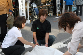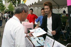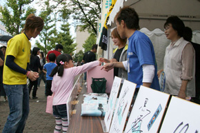 平成22年10月10日(日)に三重県津市で行われた「津まつり」に三重支部選手が参加いたしました。 選手たちはお客様のご要望にお応えして、サインを書いたり、 記念撮影をしたりしてファンサービスにご協力いただきました。 会場にはボートレース津マスコットのツッキーが登場し、お子様を中心に大人気でした。 また、「ピンクリボン」と「ハンセン病制圧事業」の募金活動を行い、参加した選手にもご協力いただきました。 津まつり終了後、選手はボランティアで他出展ブースの片づけを手伝いました。 【津まつり参加選手】 3931黒崎竜也 4156浜野孝志 4181花本夏樹 4470平田健之佑 4548篠木亜衣花 4589塩崎桐加 4591坂井田晃 4618乃村康友 4623中北将史 ![]() ![]() ![]()