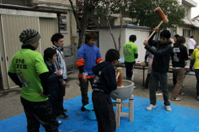 津市内にある「社会福祉法人児童養護施設 みどり自由学園」を訪問し、餅つきを行いました。