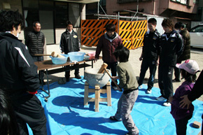 参加したボートレーサー達は餅つきを通じて、子ども達とふれあいながら親交を深めました。