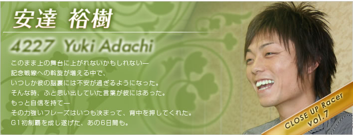「もう1億越えたんやなぁと…」 長机に置かれた1枚の紙をしばらくの間見つめていた。視線の先にあるのは、取材のために用意しておいた公式の「選手プロフィール」。登録番号・選手名・登録年月日はもちろんのこと、出走回数・1着回数・優勝回数を始めとした通算成績などが詳細に記されたものだ。何か気になる数字があるのか尋ねた時の答えがそれだった。 彼が目を留めたのは、生涯獲得賞金額。確かに大台は突破していた。しかも、昨年に比べて今年は2倍近い稼ぎ。彼が今年見せてきた活躍が目覚ましいものだったのは言うまでもない。 その活躍があってのSG初参戦。年間獲得賞金額上位52選手により争われる競艇王チャレンジカップに選出されたことは、今年1年の成果を示すには十分過ぎる程の材料だ。一つのきっかけは5月の蒲郡・周年記念だった。 「やっぱり記念戦線は厳しいです。常連の方々はエンジンを仕上げる早さも道中のスピードも全然違う。断然早いです。でも、5月の蒲郡戦がキッカケで、いいエンジンにペラを合わせることができれば、何とかやっていけるという気持ちがやっと沸いてきた」 |